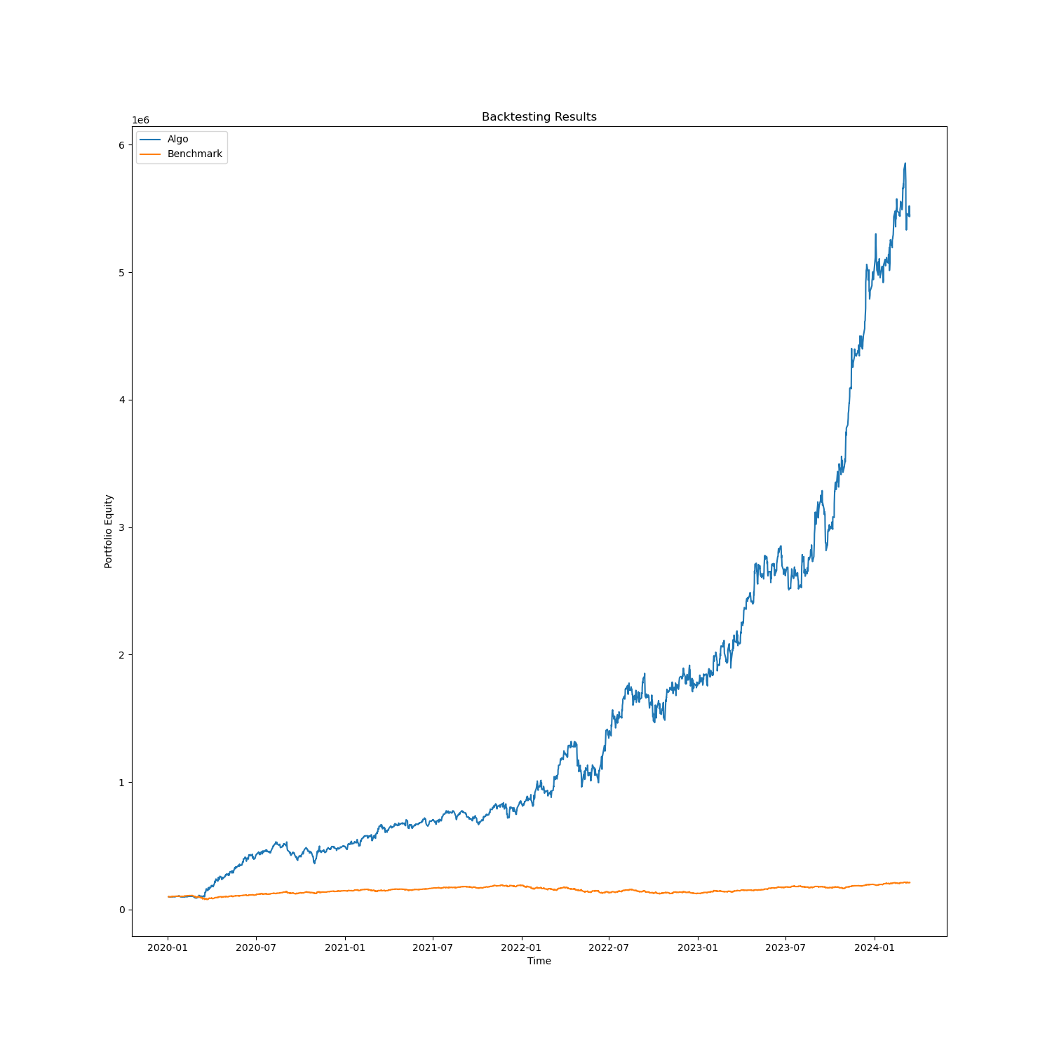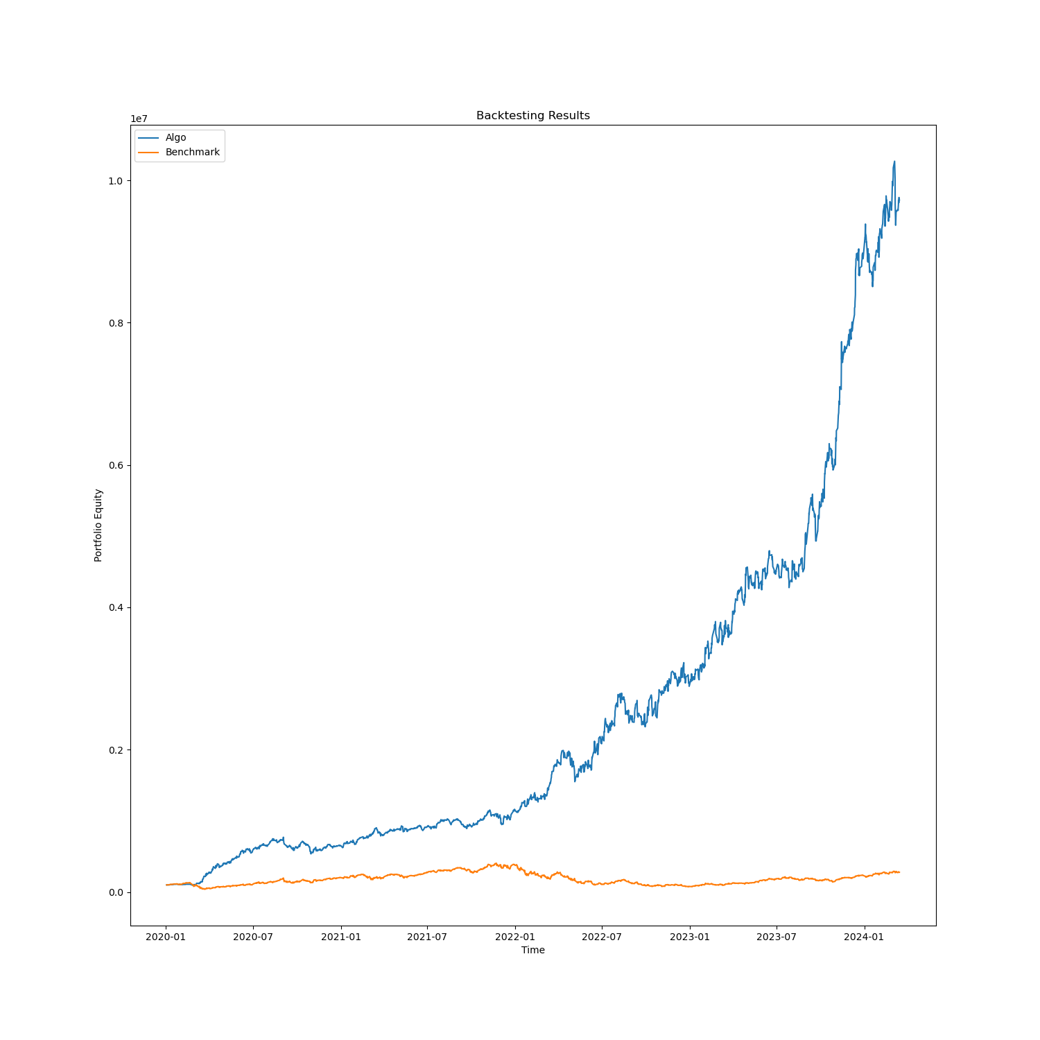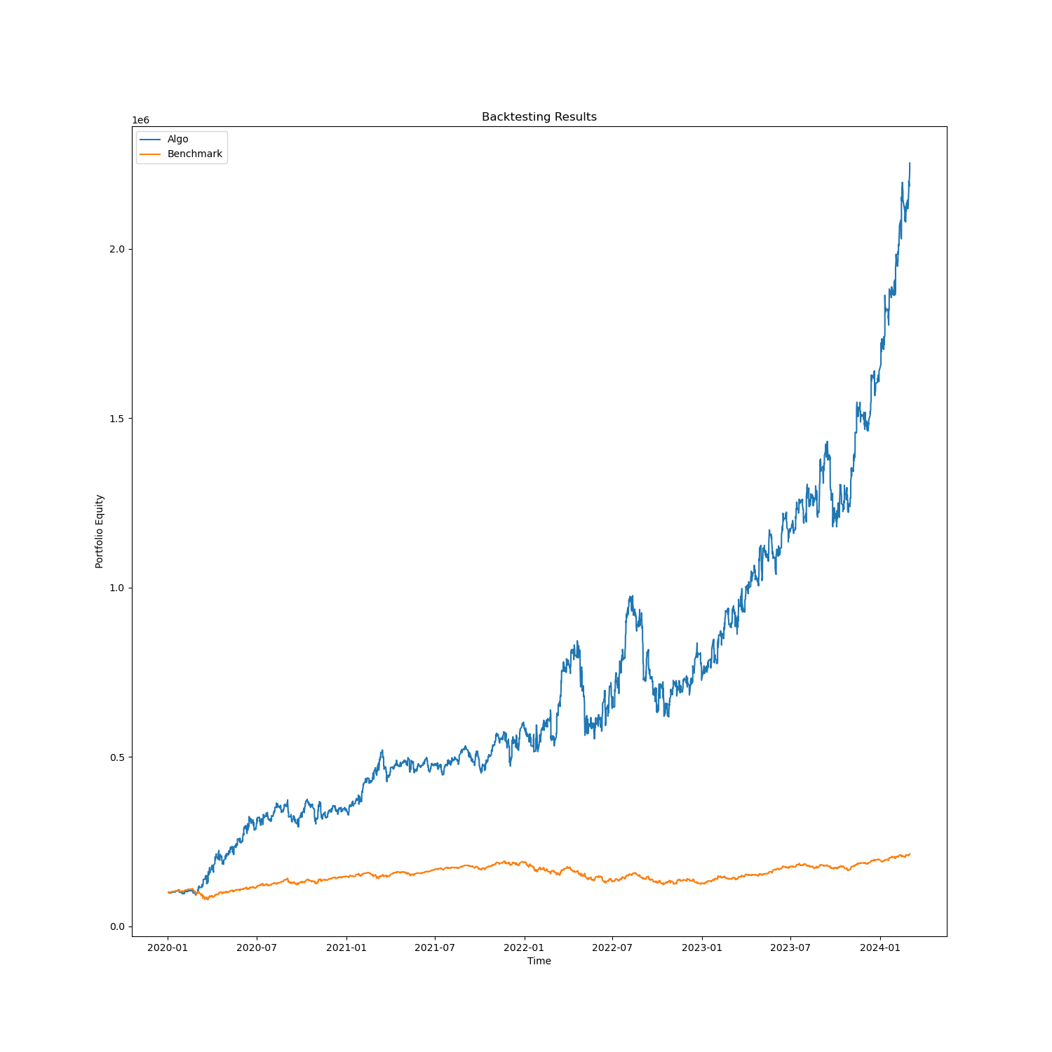 Performance data is inherently limited given the strategy's relatively recent deployment. In backtesting, under idealized assumptions and no frictions, the algorithm generated returns materially above benchmark levels across a range of regimes. Preliminary forward testing and live trading results have demonstrated the ability to generate positive returns even in challenging or bearish environments. From March 6, 2024 to April 30, 2024—during a broadly negative market window—the model returned approximately 10% while the S&P 500 declined more than 1%. While such results are not a guarantee of future performance, the consistency of the return profile and drawdown behavior across tests provides confidence that the core signal-generation and risk framework are behaving as designed.